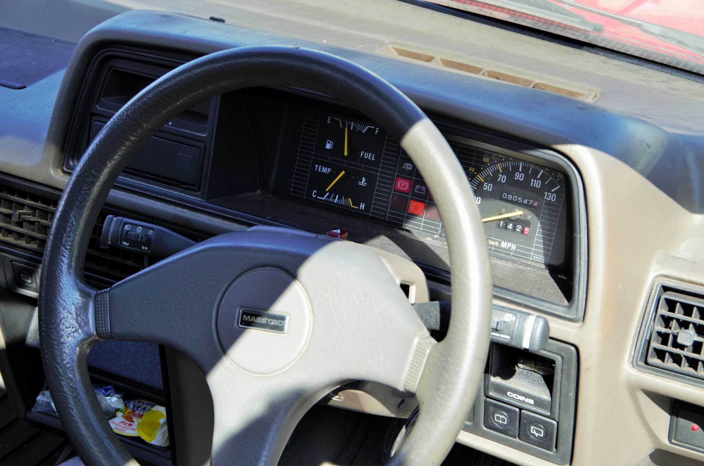 The car also benefits from upspec upholstered headrests, front anti rollbar, and Montego wheels and trims to cater for the bigger Perkins 2.0L engine. My father also fitted body-coloured mirror caps.