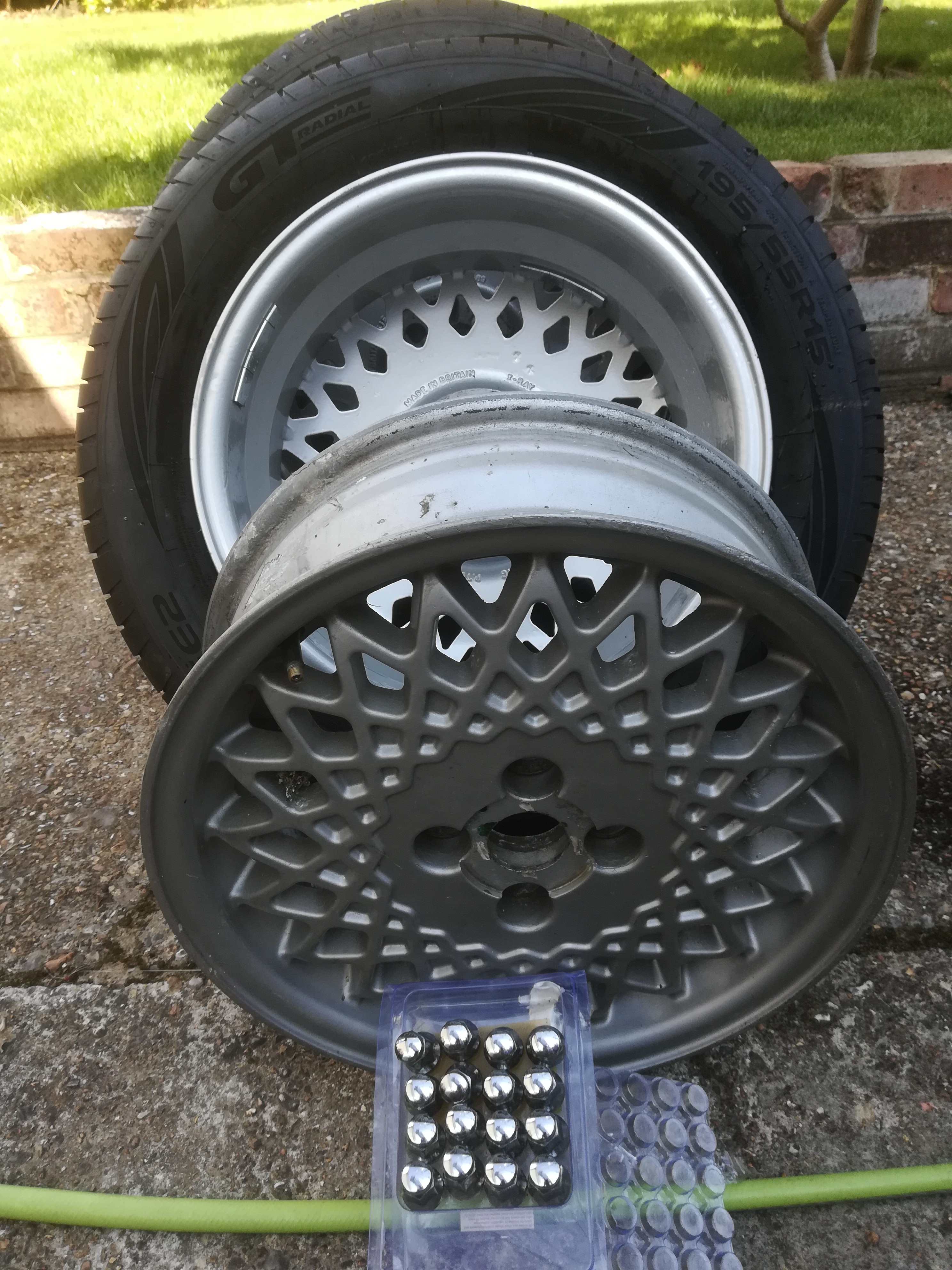 Re-enamelled lattice alloy wheels with new tyres for sale